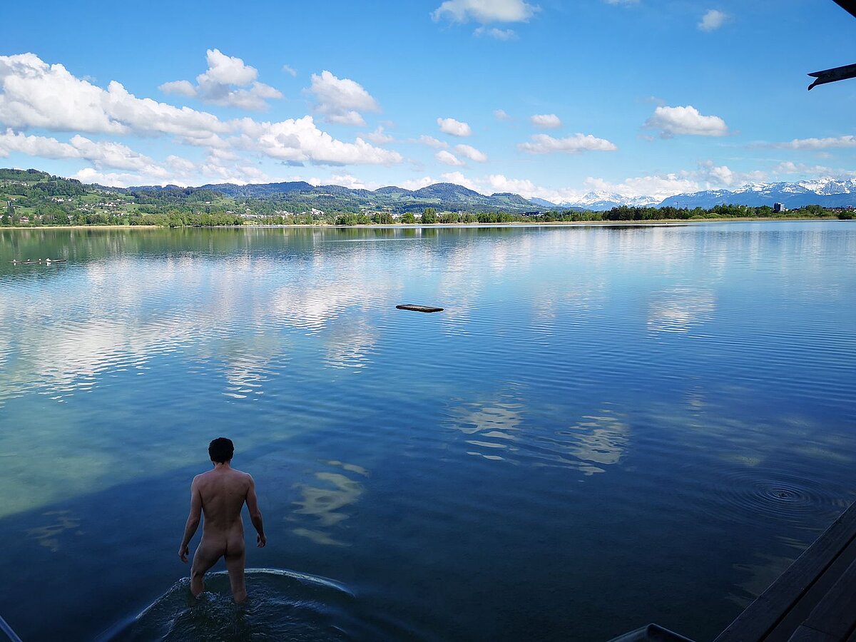 Neben einer kleinen Wanderung um den See und unserem „Anbaden“ im 12 °C kalten Wasser mit Alpenbackround, gab es eine Menge schöner Begegnungen. Wir durften schließlich für fast eine Woche Teil der Familie sein. Wir haben mal gemeinsam Käsefondue gegessen, Ramonas Mama hat Schweizer Wähe* für uns gemacht und zudem durften wir Wäsche waschen und uns im Haus wie zu Hause fühlen. Ich war sehr erfreut über dieses Willkommen-heißen, welches wir ebenso immer gerne für unsere Mitmenschen taten, als wir noch ortsansässig waren. Wiederum jetzt auf der anderen Seite zu stehen und Gastfreundschaft anzunehmen, fällt mir schwer. Mein von der Gesellschaft geprägter Verstand, erzählt mir dann Sätze, wie: „Oje, was wenn ich zuviel bin?!“ oder, „Ich möchte bloß keine Umstände machen!“.