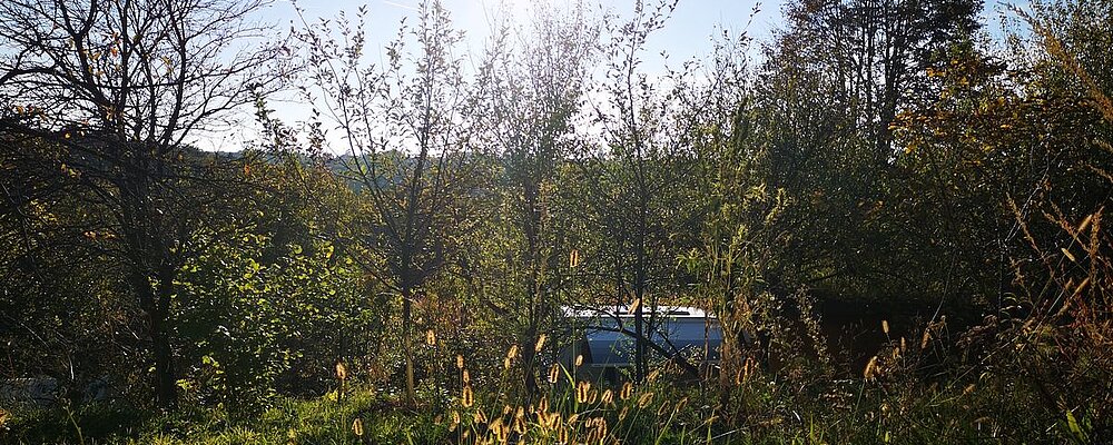 Mit 3,5 Tonnen, einem versenkten Hinterrad, leicht bergauf auf nassem Gras anfahren und das mit Frontantrieb ist total aussichtslos. Und so steckten wir fest. Sabrina ist noch anderweitig eingebunden und "muss" mich daher mit Momo (dem Womo) allein lassen.