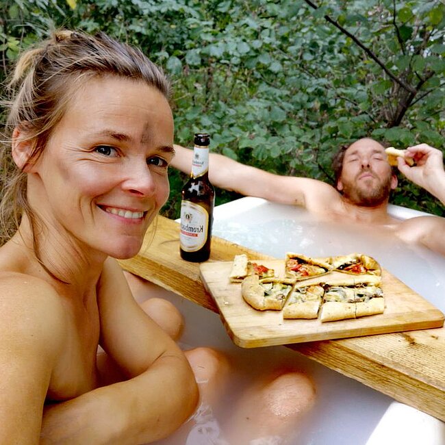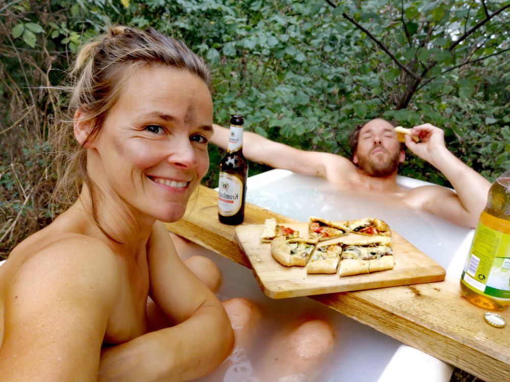 Und Leute, wie geil ist das denn bitte? Da könnte man denken, oar das dauert ja ewig bis das Wasser warm ist oder man genießt die Einfachheit und feiert, dass man die Möglichkeit hat inmitten der Natur ein heißes Outdoorbad zu nehmen.