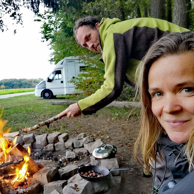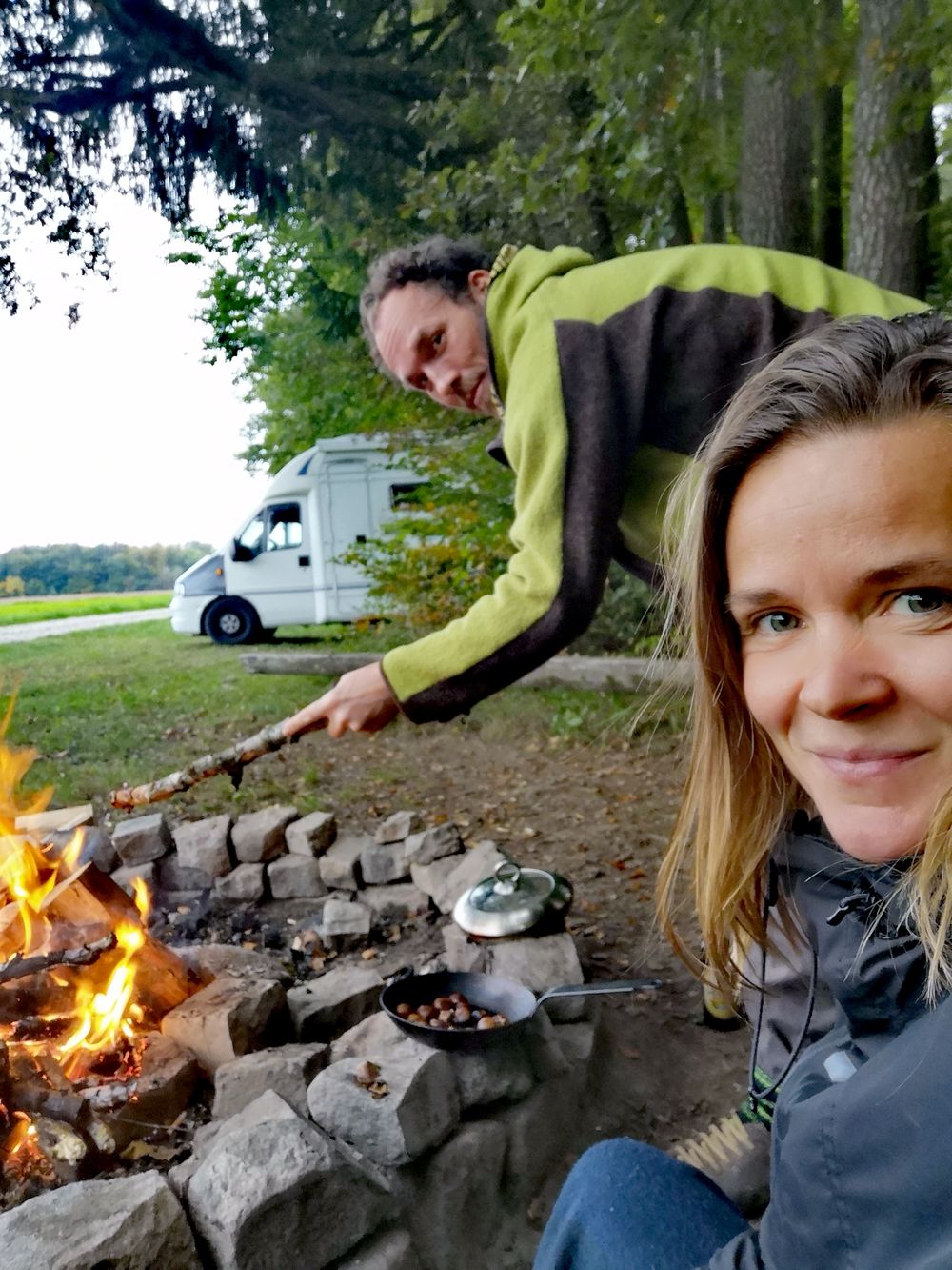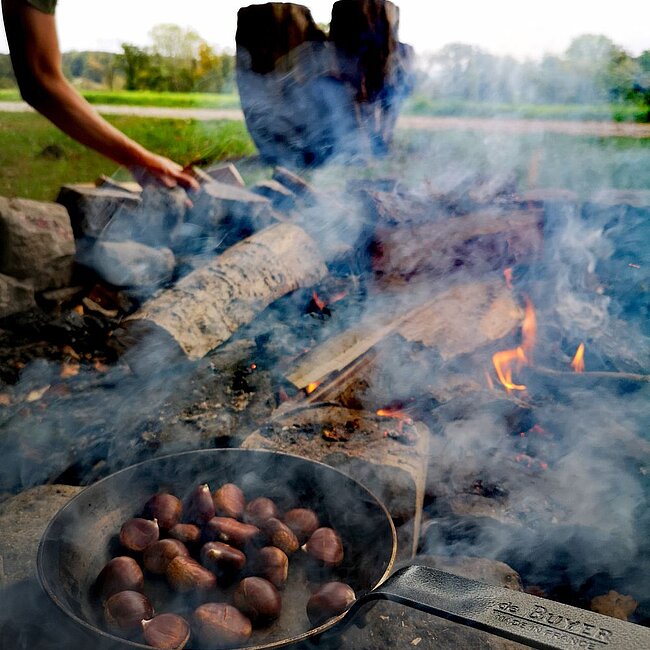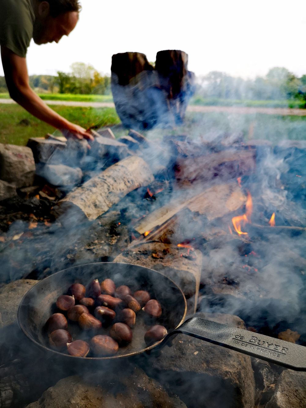 Unsere gesammelten Esskanstanien im Feuer geröstet. Yammi.