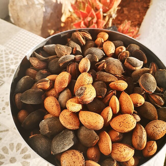 Auf dem Grundstück unserer Gastgeber wachsen Mandeln und Oliven und wir dürfen uns bedienen