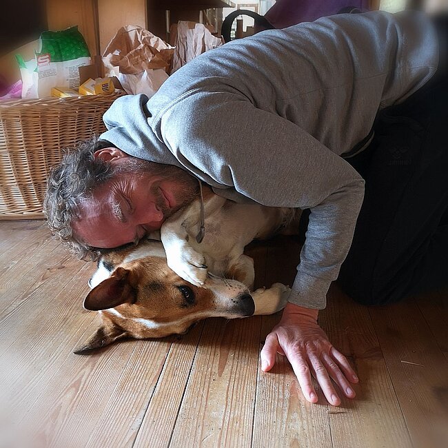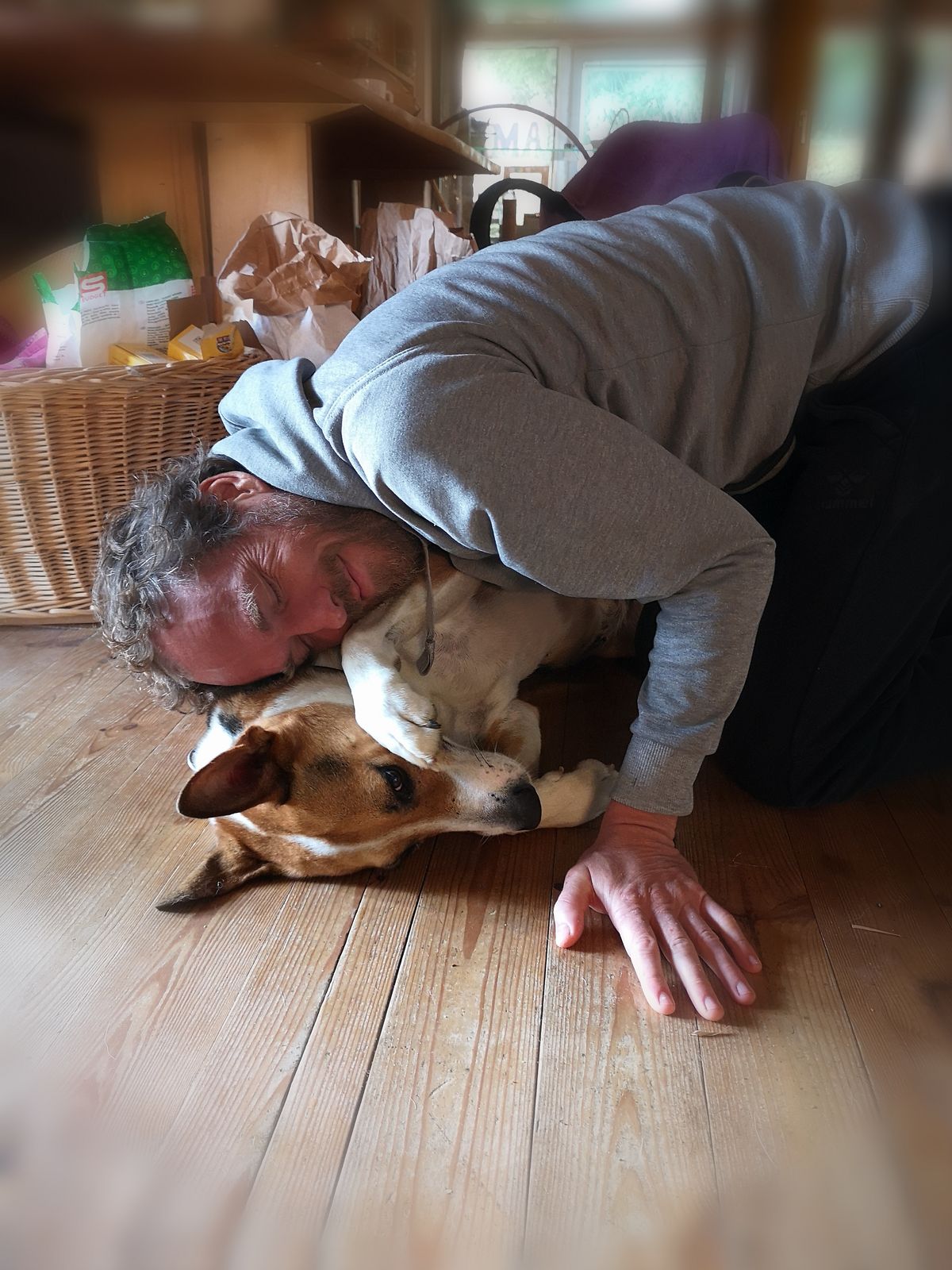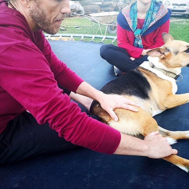Fass mich an , fass mich an ... Nie genug von zu viel Liebe, egal wo. Masch will gekuschelt werden, das Trampolin ist dabei nicht hinderlich.