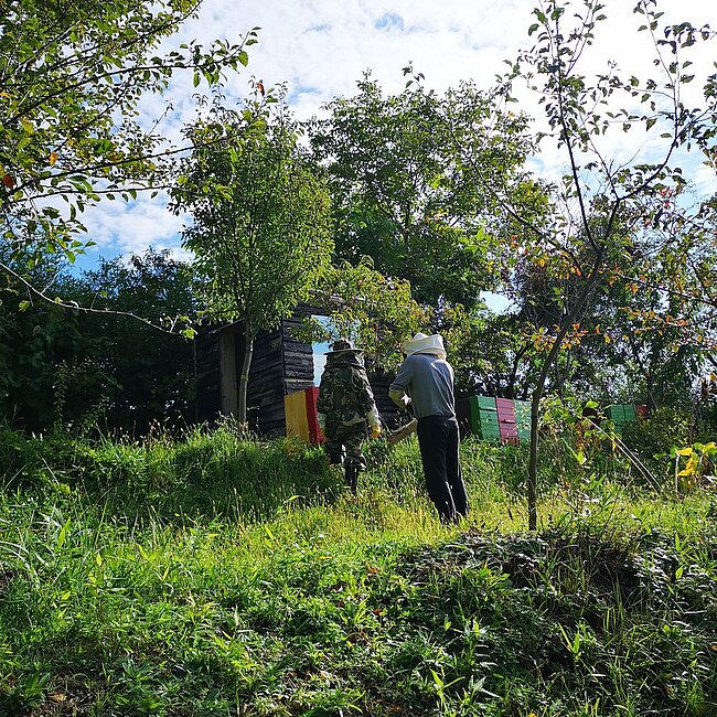 ... nach kurzer Eingewöhnungszeit imneuen Zuhause, werden die Bienen nun ins Freie gelassen. Fröhliches Summen!