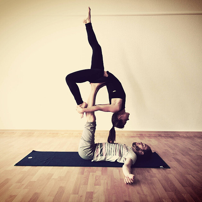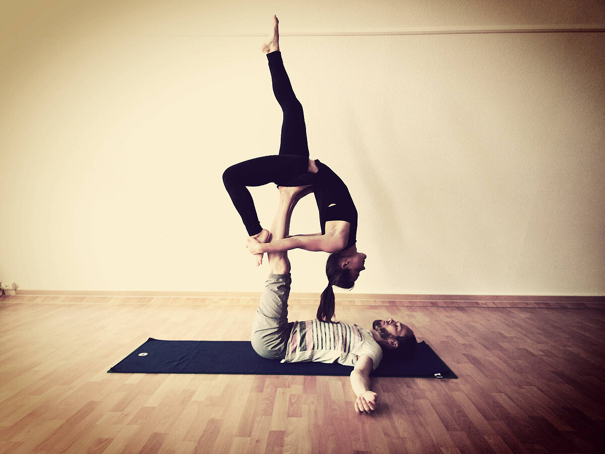 Wir lernten uns vor einigen Jahren (vielleicht vor 6 ?) kennen bei der Partnerakrobatik bzw. beim AcroYoga. Wir teilten schnell die Leidenschaft dafür und zudem waren wir zusammen, ziemlich schnell ziemlich gut. Wir lieben die Bewegung und das Spiel. Unsere Wege mussten sich also hier kreuzen =)